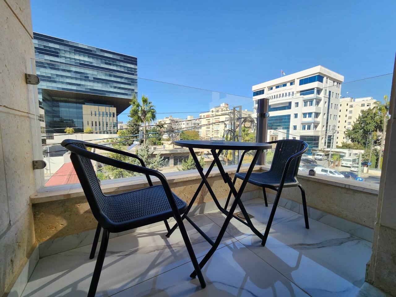 Smasi Apartments are located in Shmeisani, a central and upscale business district in Amman. The area offers a mix of quiet residential streets and lively corporate activity, which means it can get busy during peak office hours. Guests have quick access to cafés, restaurants, supermarkets, banks, and essential services—all within walking distance. With its safe atmosphere and excellent connectivity to Abdali, Abdoun, and major hospitals, Shmeisani is an ideal base for both business and leisure travelers.